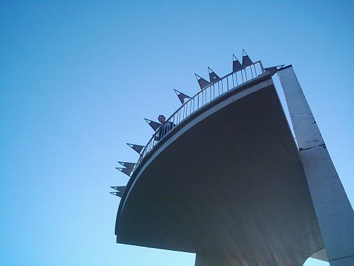 Blick auf das Mahnmal von unten. Die Spitzen zeigen die Himmelsrichtungem zu bekannten Orten in Ostdeutschland an.
