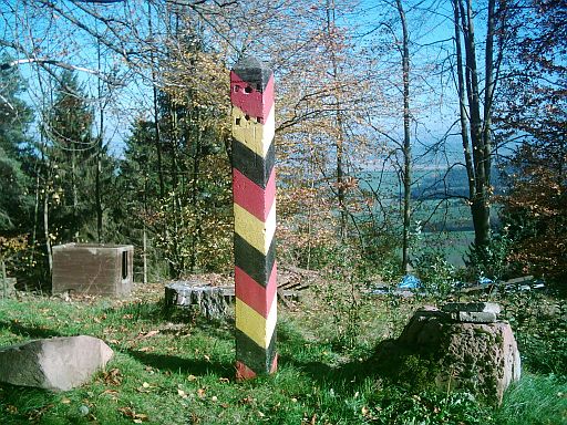 Im Garten des Lokals wurde nach der Wende eine abgebaute Grenzsäule zur Erinnerung an die Teilung aufgestellt.