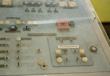 Schaltpult des Kommandoturms der GÜST. |