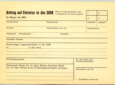 ![]() Visum als Anlage für Bürger aus Berlin (West). Da die DDR ihren Reisepass nicht anerkannte, mussten sie bei der Einreise ihren Personalausweis vorlegen. |