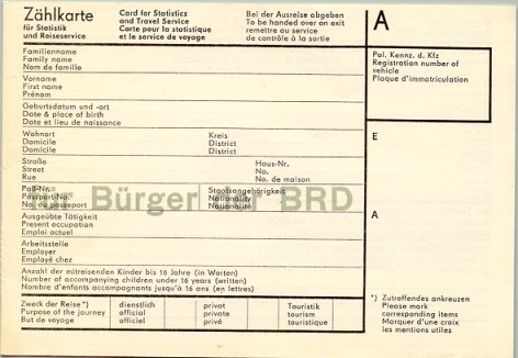 Zählkarte für Bürger der Bundesrepublik (vor der Ausreise auszufüllen)