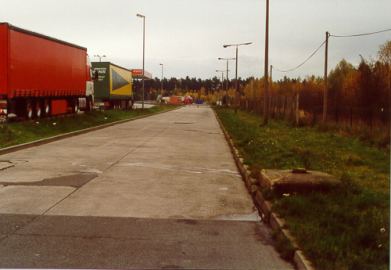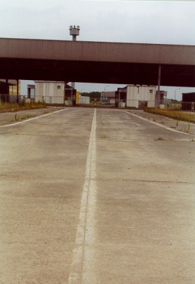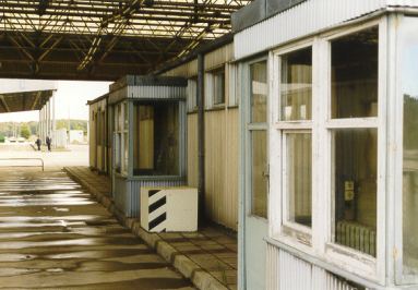 die GÜST. Auf den blauen Schildern waren die Symbole für PKW, Bus und