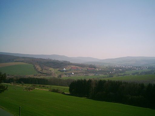 Vom Pferdebergturm bei Gerblingerode (alte Bundesrepublik) hatte man einen guten Überblick auf die Grenzsperranlagen und in die DDR hinein (s. nächstes Bild).