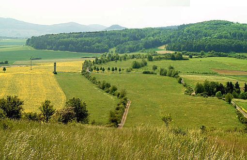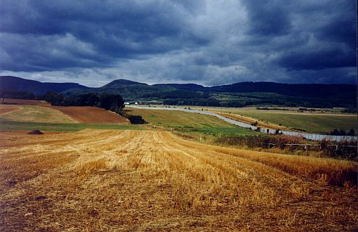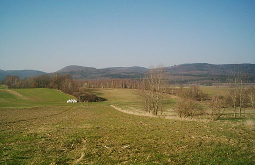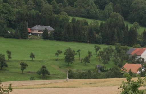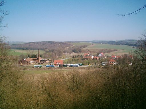 1980 2005 Foto vom Standorfsberg zwischen den Ortschaften Buttlar (Thüringen) und Grüsselbach (Hessen) über die Bundesstraße 84 (damals Straßensperre B 84) hinweg Richtung Rockenstuhl (Rhön) - © G. Heim