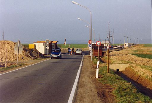 Straßensperre zwischen Wennerode (Niedersachsen) und Lüttgenrode (Sachsen-Anhalt) vor und Grenzübergang kurz nach der Wende.(© O.Wolff)