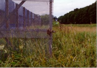 überwinden: Der 3,60 hohe Zaun aus Steckmetallgittern. |