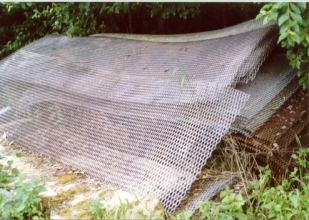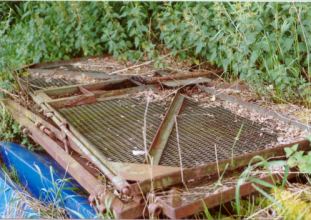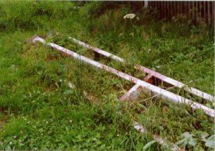 Am Rande des Parkplatzes des Museums Mödlareuth fanden sich diese Reste der Grenzanlagen, die hier von verschiedenen Orten zusammengetragen worden sind. 5 Fotos vom 22.Juli 2001