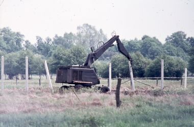 Bagger beim Setzen von Grenzpfählen für den Metallgitterzaun. © Archiv Grenzschutzschule, Lübeck