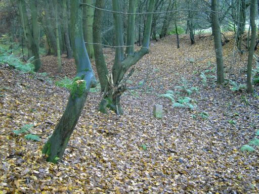 © Matthias Bauer 2005 Und der nächste Stein (unten rechts). Links ist hier die ehem. Grenzschneise an dem jüngeren Baumbestand gut zu erkennen.