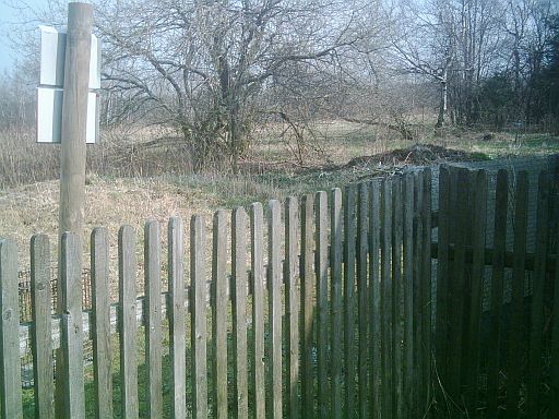 Der Grenzstein direkt hinter dem Gartenzaun.