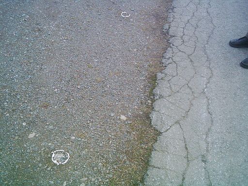 Einige hundert Meter weiter, am Ende der Brockenblickstraße (Sackgasse) sind im Boden noch deutlich die Überreste der Plastikgrenzpfähle des Bundesgrenzschutzes zu erkennen.