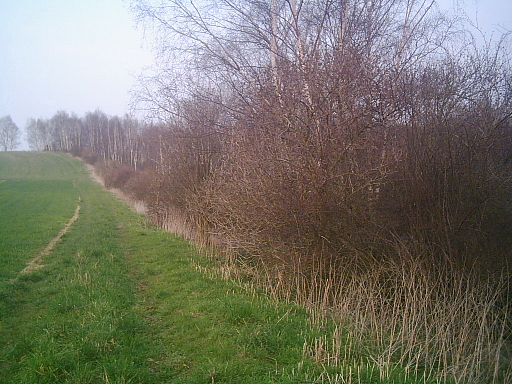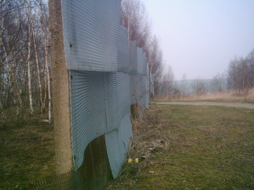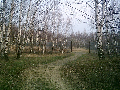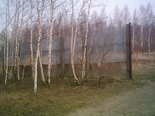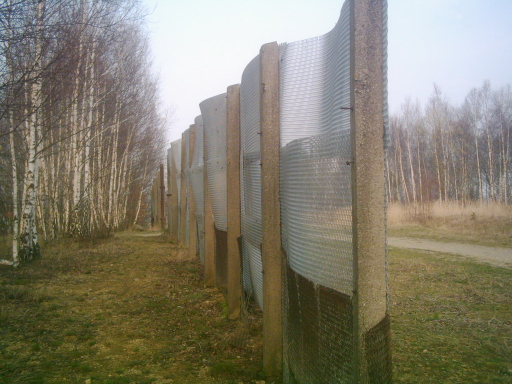Überschreitet man die Grenze, muß man sich seinen Weg durch junge Birken bahnen. Nach wenigen Metern erkennt man Überreste des Grenzzaunes, die an dieser Stelle stehen gelassen wurden.