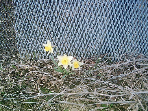 Osterglocken am Metallgitterzaun Am "Kleinen Fallstein" 15 Aufnahmen vom 30.3.2007 (Teil 2) Der "Kleine Fallstein" bei Hornburg gehört zu den Ausläufern des Nordharzes und lag bis 1989 im Sperrgebiet der DDR.