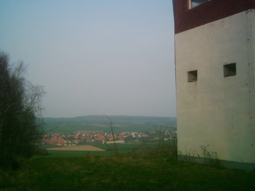 Erhaltener Wachturm mit Blick auf das Dorf Rhoden (Sachsen-Anhalt) Auf dem Kleinen Fallstein 6 Aufnahmen vom 30.3.2007 (Teil 3) Auf dem Berg "Kleiner Fallstein" bei Hornburg ist bis heute ein Wachturm des Grenzregimes erhalten.