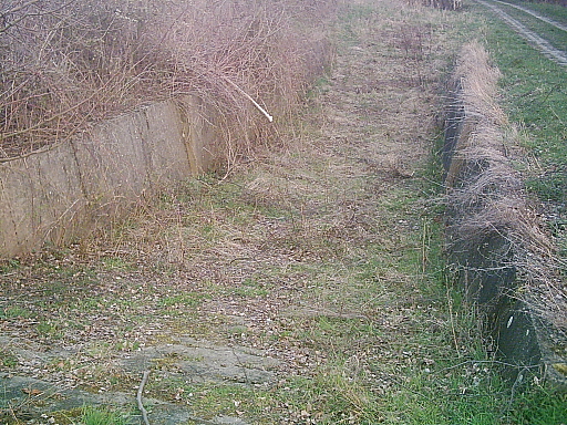 Kolonnenweg, der von der Grenze (Hintergrund) zum Wachturm führt. Bis 1989 war hier natürlich kein Baumbewuchs.