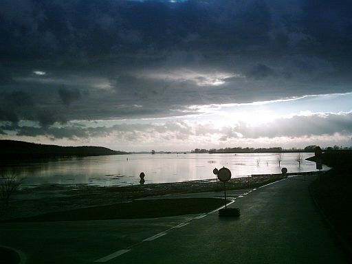 Sonnenuntergang am Fähranlieger Lenzen, wegen des Hochwassers im April 2006 verwaist.
