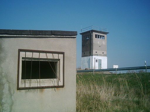 Im Vordergrund ein Gebäude, das von den Grenztruppen genutzt wurde.