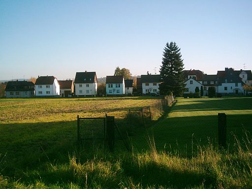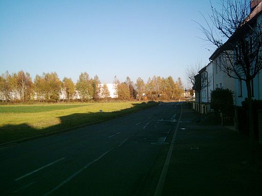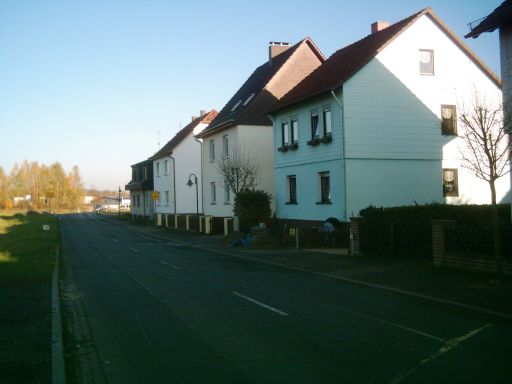 Direkt hinter dem letzten Haus in Obersuhl verlief die Grenze. Die Fahrbahn (aber nicht der Bürgersteig) vor den letzten 5 Häusern (siehe nächstes Bild) vor der Grenze gehörte auch schon zur DDR, wurde aber durch eine Grenzkorrektur in den siebziger Jahren der Bundesrepublik zugeschlagen, damit die Anwohner ihre Häuser auch mit dem Auto erreichen konnten.