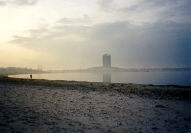 Diesen Anblick hatten die DDR-Grenztruppen bis zur Wende: Das Hotel Maritim in Travemünde und der FKK-Strand auf dem Priwall.