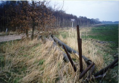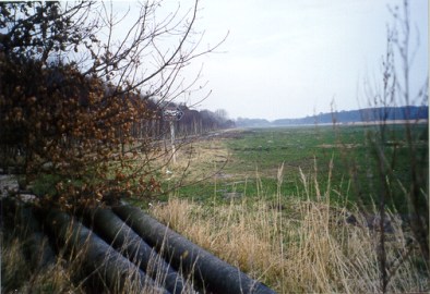 Nach Errichtung des "modernen" Metallgitterzauns weiter im Hinterland im Jahre 1973 wurde der unmittelbar an der Grenze liegende Zaun abgebaut oder - wie auf diesem Bild - dem Verfall preisgegeben.