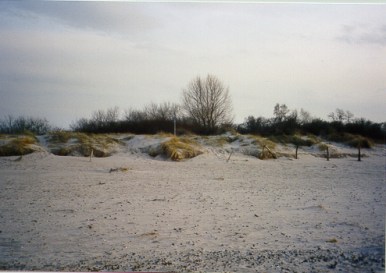 Die Grenze zwischen Schleswig-Holstein und Mecklenburg. Bis 1989 markierte hier eine bis ins Meer reichende, armdicke Kette die Trennlinie zwischen den beiden deutschen Staaten (vgl. auch das Buch von Ritter/Lapp, S.114). 9 Fotos vom 12.März 2002 Auf der Halbinsel Priwall an der Ostsee begann die Demarkationslinie, die Deutschland zwischen 1945 und 1990 teilte. Gleichzeitig war sie ein Kuriosum. Jahrzehnte lang war sie nur über eine Fähre von Travemünde aus zu erreichen, da ihr Hinterland zum Grenz- und Sperrgebiet der DDR gehörte. Ebenso kurios war im Sommer die "Aufteilung" des Strandes am östlichen Rand des Priwalls. Diesseits der Grenzlinie Travemündes FKK-Strand, jenseits menschenleer. Von zwei Wachtürmen aus "überwachten" die Grenzer (bzw. die Grenzaufklärer auch aus dem Gebüsch) mit Feldstechern die Badenden. Heute ist von der Teilung auf dem Priwall kaum noch etwas zu sehen. Doch mit etwas Mühe lassen sich auch hier einige Relikte des "eisernen Vorhangs" ausfindig machen.
