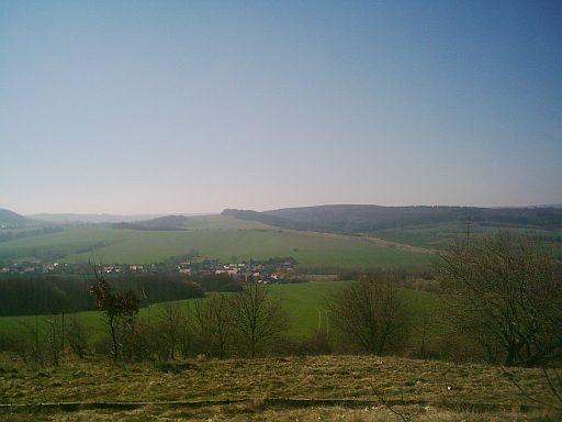 Blick über den ehemaligen Grenzstreifen von der Roten Warthe aus auf Duderstadt und Teistungen 10 Aufnahmen von der Roten Warthe zwischen Duderstadt und Brochthausen vom 2.April 2005. Die Rote Warthe - eine Anhöhe - lag noch auf dem Gebiet der Bundesrepublik und ermöglichte einen weiten Blick in die DDR.