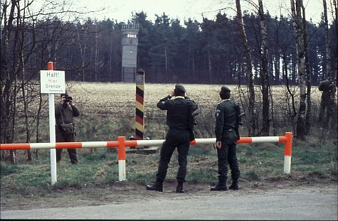 DDR-Grenzaufklärer und BGS-Beamte vis á vis an der Stadtgrenze bei Lübeck-Schlutup (Stumpfer Weg), achtziger Jahre: © Peter Matera