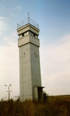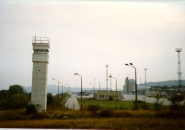 Wenige Kilometer westlich der Stadt Eisenach mit ihrer berühmten Wartburg lag an der Autobahn 4 der DDR-Grenzkontrollpunkt Wartha. Weite Teile des ehemaligen Areals werden heute als Rast- und Tankanlge genutzt. So befindet sich die Raststätte im ehemaligen Stabsgebäude der Grenzübergangsstelle ("GÜST"). Aber ein Teil der Originalanlagen sind erhalten und können auch heute noch - zumindestens von außen - besichtigt werden, so z.B. ein Wachturm, das Visa-Büro und die Ausreisestraße. 5 Fotos vom 6.Oktober 1996
