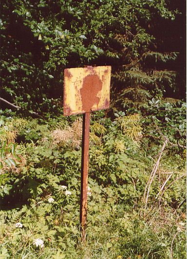 Verrostetes Grenzschild auf bayrischer Seite bei Nordhalben. Früher trug es die Aufschrift "Landesgrenze".