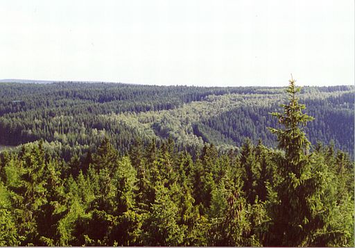 Blick von der Thüringer Warte auf den ehemaligen Grenzstreifen. Deutlich sieht man das junge Grün, das nach der Wende im Todesstreifen angepflanzt wurde Der Thüringer Wald hat neben dem Harz und der Rhön besonders unter der innerdeutschen Grenze gelitten. Wurden doch hier seit den fünfziger Jahren ohne Rücksicht auf die Natur breite Schneisen in die Landschaft geschlagen, um den Grenztruppen eine perfekte Überwachung und ein "freies Schussfeld" zu ermöglichen. Es wird noch Jahrzehnte dauern, bis diese Narben in der Landschaft nicht mehr zu sehen sein werden.