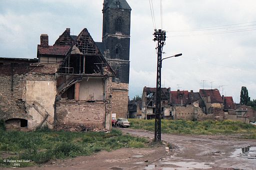 Dieses Foto zeigt Aschersleben im Juni 1991 und macht deutlich, wie marode die DDR war.