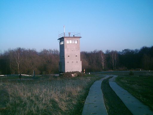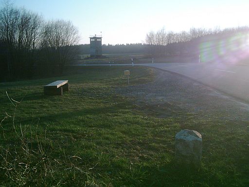 Relikte der Teilung, neu aufgestellt am Fuße der ehm. "Führungsstelle". Im Hintergrund sind die Berge des Südharzes zu sehen (Niedersachsen).