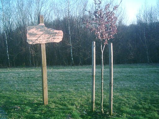 "Einheitseiche Kreuzbusch", gepflanzt am 3.10.1990 und erneut am 3.10.2001. |