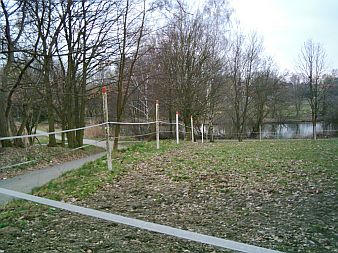 Junge Birken an der Stelle des Metallgitterzauns.