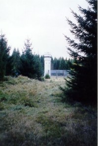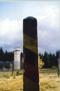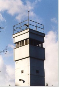 DDR-Grenzsäule (ohne Emblem), MGZ und Wachturm.