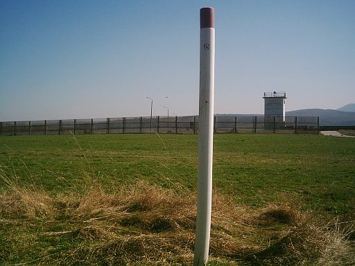 Nach 15 Jahren ist der "Lack ab": DDR-Grenzsäule.