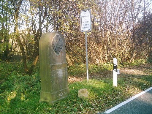 Kurhessisch-preußische Grenzsäule an der Straße Hönebach-Großensee. Foto1: F.Bortfeldt (28.10.2005) An der - zwischen 1952 und 1990 - gesperrten Straße zwischen Hönebach (Hessen) und Großensee (Thüringen). 10 Aufnahmen, 8 davon von Matthias Bauer vom 9.November 2005.