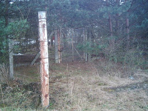 Auf dem ebenfalls beleuchteten Areal hinter dem Zaun befanden sich Garagen und Wirtschaftsgebäude, die aber auch fast alle abgerissen wurden.
