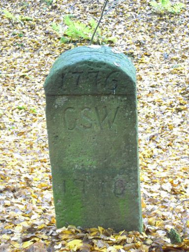 © Matthias Bauer 2005 Nach ein paar hundert Metern kommt man in den Wald. Ein alter Grenzstein von Osten (Thüringen). GSW steht für Großherzogtum Sachsen-Weimar.