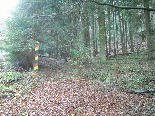 © Matthias Bauer 2005 Und der nächste Stein (unten rechts). Links ist hier die ehem. Grenzschneise an dem jüngeren Baumbestand gut zu erkennen.
