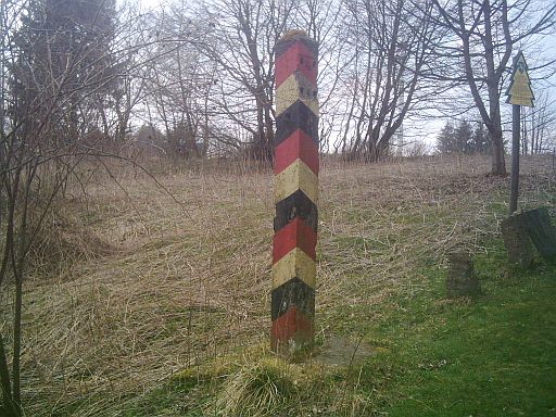 Wenige Meter weiter findet man diese nach der Wende auf westdeutscher Seite aufgestellte DDR-Grenzsäule.