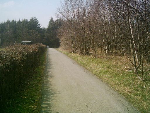Biegt man am Ende der Brockenblickstraße rechts ab, läuft man in Richtung der Benneckensteiner Straße parallel zur Grenze. Die Bäume auf der rechten Seite gehören schon zu Sachsen-Anhalt.
