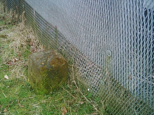 Der Grenzstein direkt hinter dem Gartenzaun.