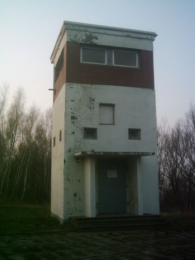Erhaltener Wachturm mit Blick auf das Dorf Rhoden (Sachsen-Anhalt) Auf dem Kleinen Fallstein 6 Aufnahmen vom 30.3.2007 (Teil 3) Auf dem Berg "Kleiner Fallstein" bei Hornburg ist bis heute ein Wachturm des Grenzregimes erhalten.