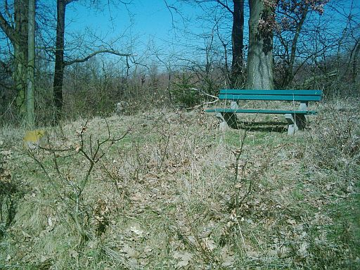 Ausflüglerbank aus der Zeit noch vor der Wende unmittelbar vor der Grenzlinie (siehe den Grenzstein links). 1965 besuchte Bundespräsodent Heinrich Lübke diesen Ort.