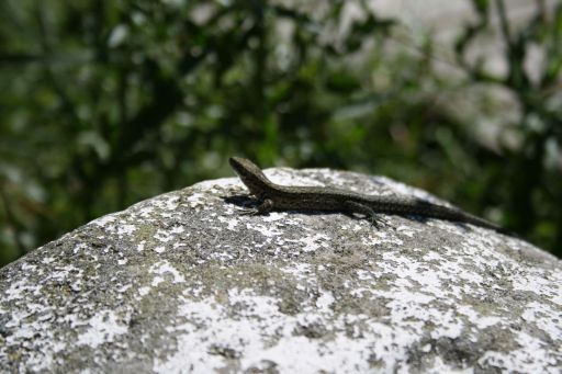 Zaunechse, aufgenommen am 1.August 2007 auf Bayerisch-Thüringeschem Grenzstein nahe des "Schwarzes Moores".