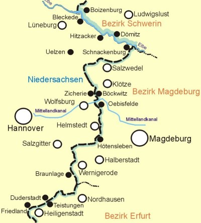 Von Bleckede an der Elbe bis Friedland (Grenzdurchgangslager) im Eichsfeld erstreckte sich über eine Länge von 549,9 Kilometern die Landesgrenze Niedersachsens zur DDR bzw. deren Bezirke Schwerin, Magdeburg und Erfurt. In der gesamten Zeit der Teilung konnte keine Einigung über den Grenzverlauf im 95 Kilometer langen Abschnitt der Elbe und einer etwa 1,2 Kilometer langen Strecke der Warmen Bode südostwärts von Braunlage erzielt werden. Nach dem Abschluß des "Grenzpfeilerabkommens" 1976 erfolgte durch die Braunschweigischen KohlenBergwerke AG Helmstedt und dem Tagebau Harbke der Abbau der in der Grenzregion bedeutsamen Braunkohlevorkommen. Ein Zaun trennte die beiden Abbaubereiche. Die größte und bedeutendste Grenzkontrollstelle an der innerdeutschen Grenze befand sich an der Autobahn Hannover - Berlin (Helmstedt / Marienborn). Über sie wurde auch der Verkehr der Alliierten von und nach Berlin abgewickelt. Während des Kalten Krieges wurde die Situation auf dem Brocken wesentlich durch die Grenzlage und militärtechnische Einrichtungen bestimmt.