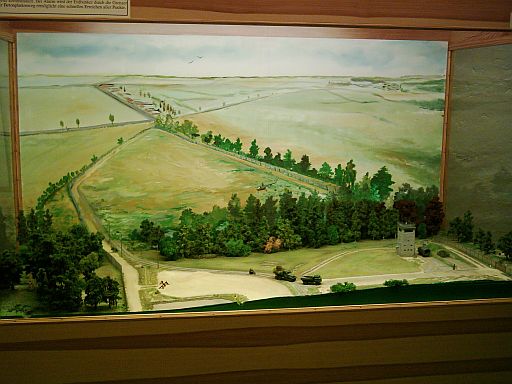 Auch die Straßenlaternen wurden erst nach der Wende installiert. Die folgenden zwei Aufnahmen wurden im Grenzmuseum der Burg Brome gemacht und zeigen dieselbe Stelle im Jahre 1986 im Modell.